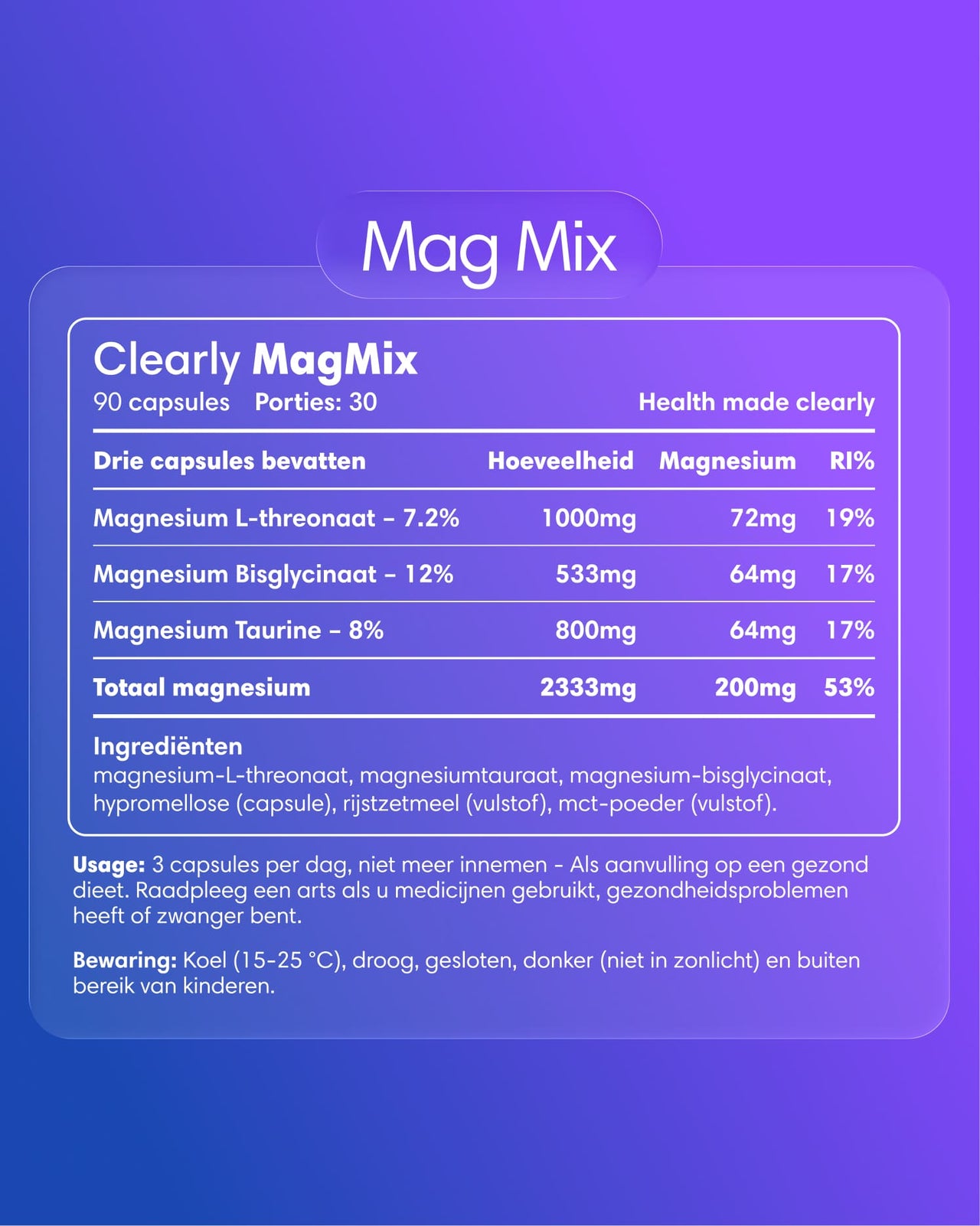 Ja, Clearly Magnesium Mix is geschikt voor zowel vegetariรซrs als veganisten.