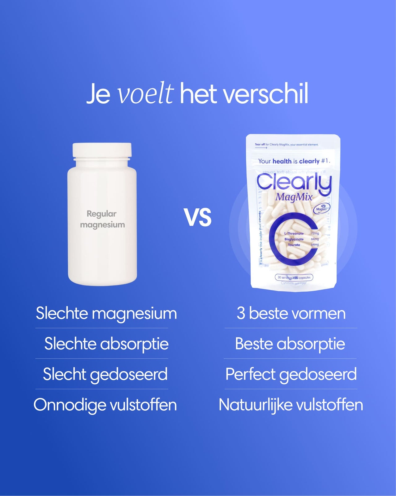 Eรฉn krachtige formule met de 3 vormen magnesium die รฉcht werken.